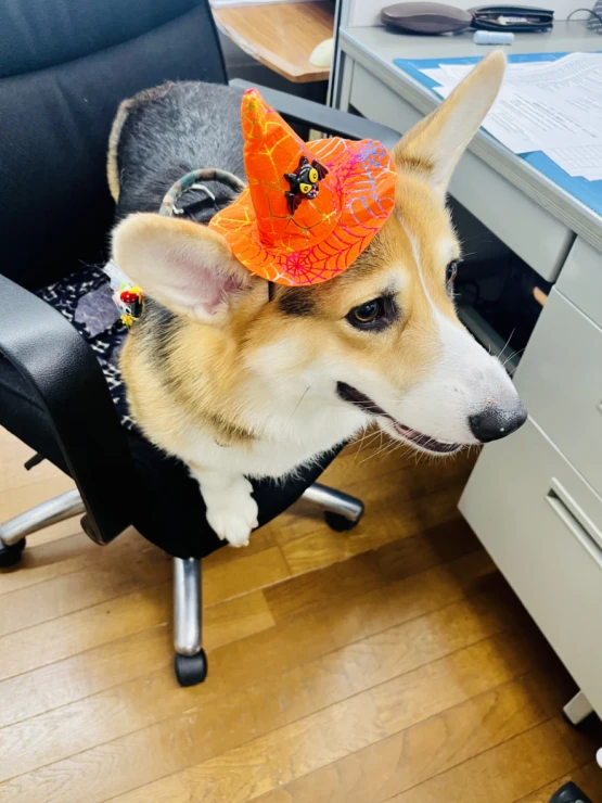オレンジ色のハロウィン帽子をかぶって、社内のみんなに笑顔を届けてくれました🧡